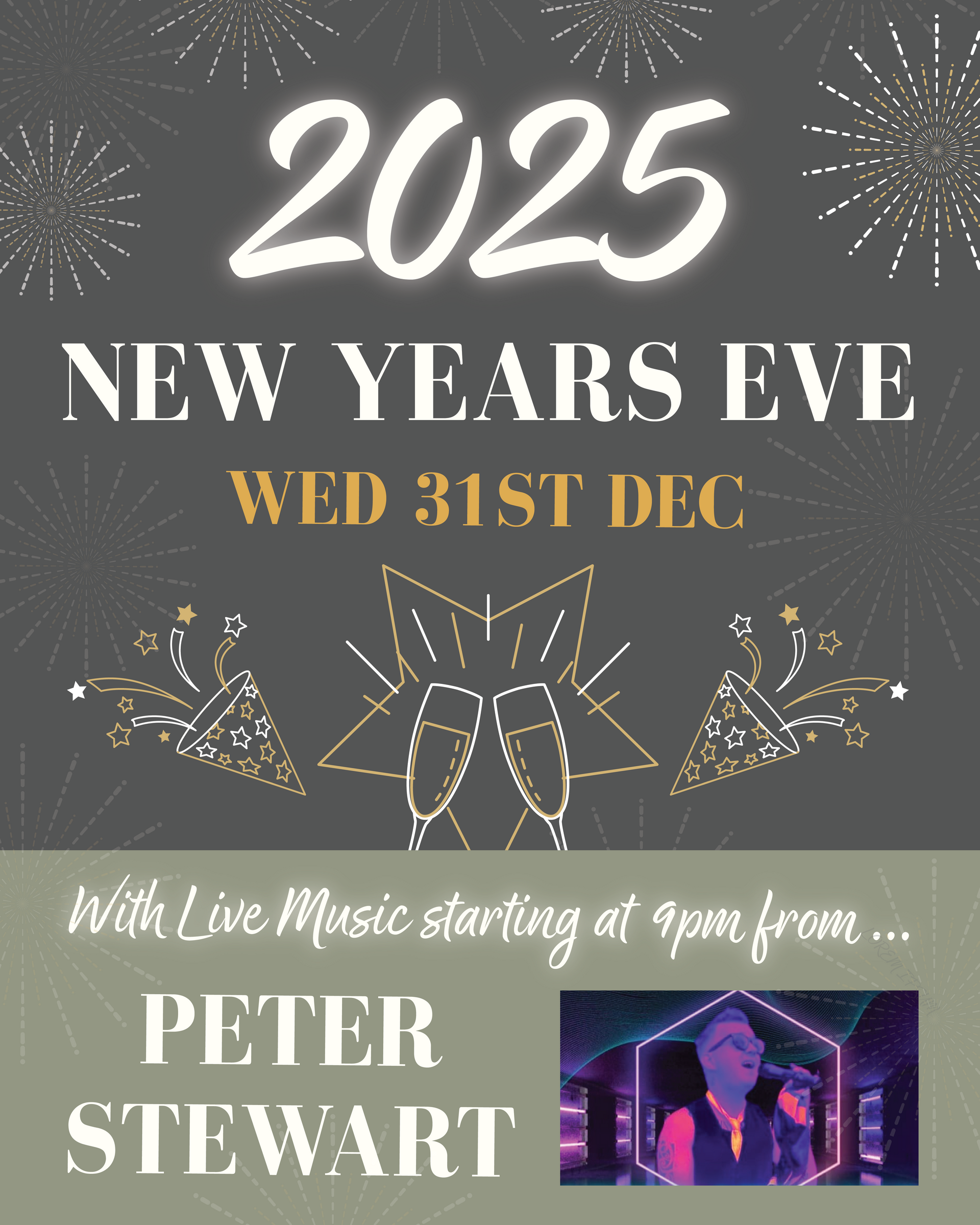 JSay goodbye to 2025 in style at The Crown as we welcome the brilliant Peter Stewart for a special New Year’s Eve performance from 9pm. He’ll be bringing a full evening of live music, great energy, and the perfect soundtrack to carry us right through to the countdown.